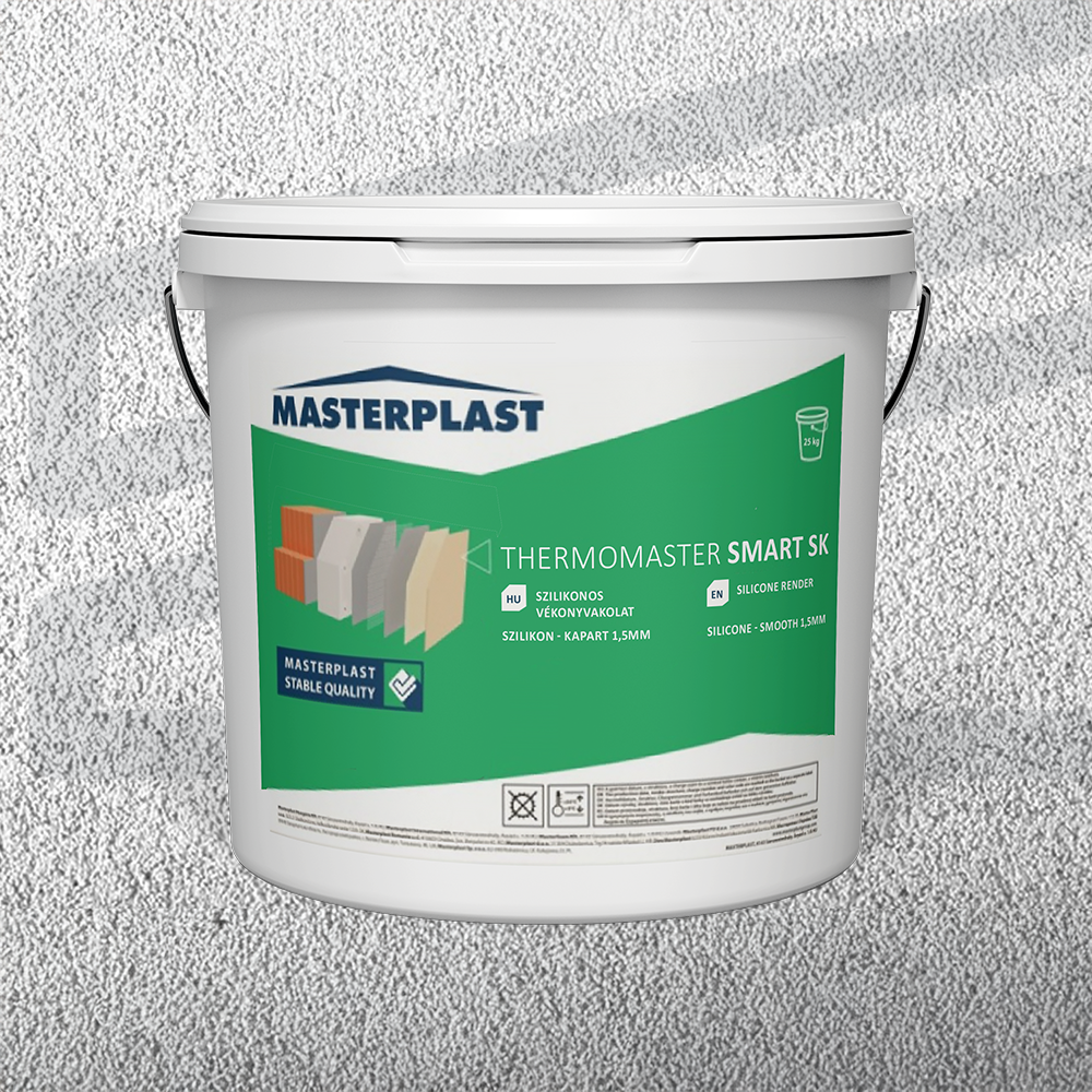 A Thermomaster Smart 1,5 mm egy szilikonos homlokzati vakolat kapart struktúrával, amely homlokzati hőszigetelő rendszerekre és finoman megmunkált homlokzatfelületekre készül időjárásálló fedőrétegként.