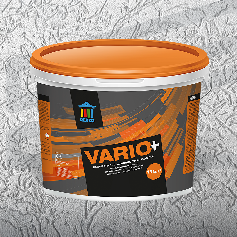 A REVCO Vario+ gyárilag előkevert, vízzel hígítható, műgyanta diszperziós kötőanyagú, kvarc töltőanyagú, UV-sugárzást elnyelő és egyéb tulajdonság javító adalékokat tartalmazó, vödrös kiszerelésű vékonyvakolat.