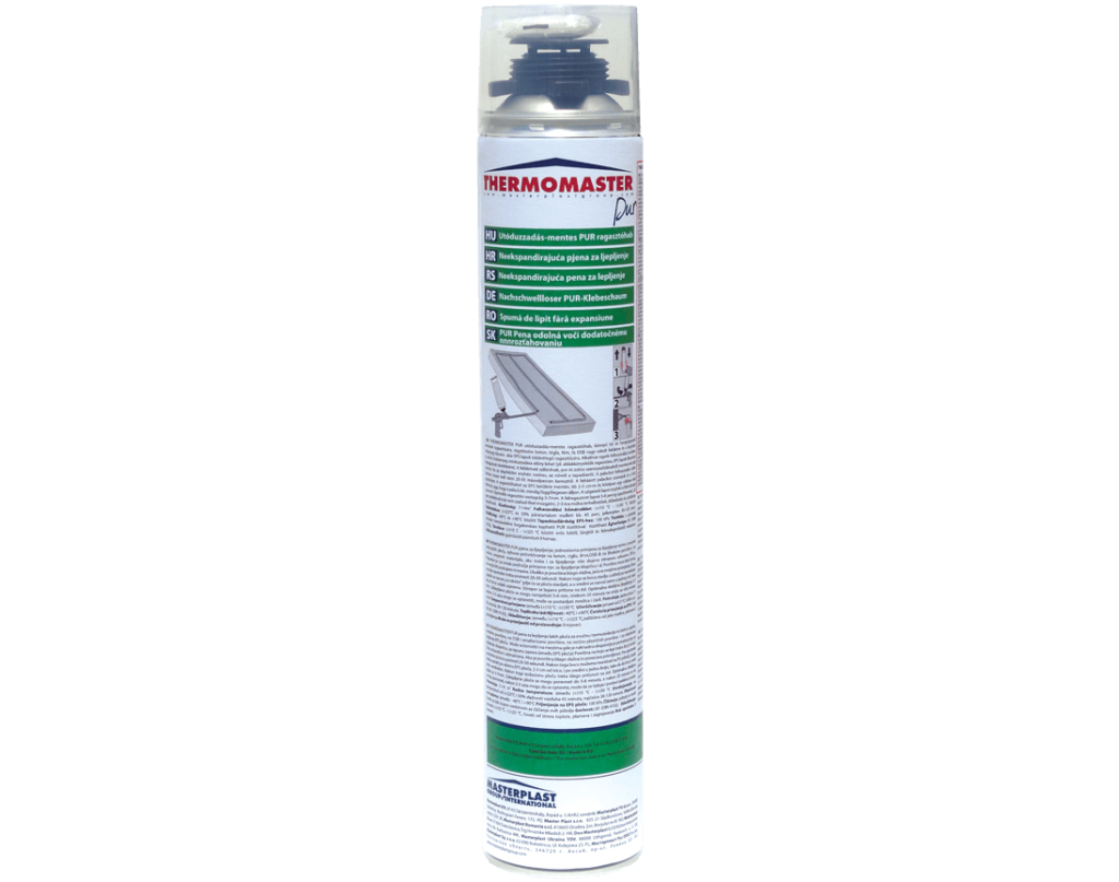 A Thermomaster ragasztóhab modern, poliuretán alapú thermomaster pur ragasztóhab, amelyet kifejezetten EPS és XPS hőszigetelő rendszerekhez fejlesztettek. Mint Masterplast ragasztóhab, megbízható megoldást nyújt homlokzati és lábazati hőszigeteléshez, valamint belső szigetelő panelek, párkányok és könnyű burkolóelemek rögzítéséhez.