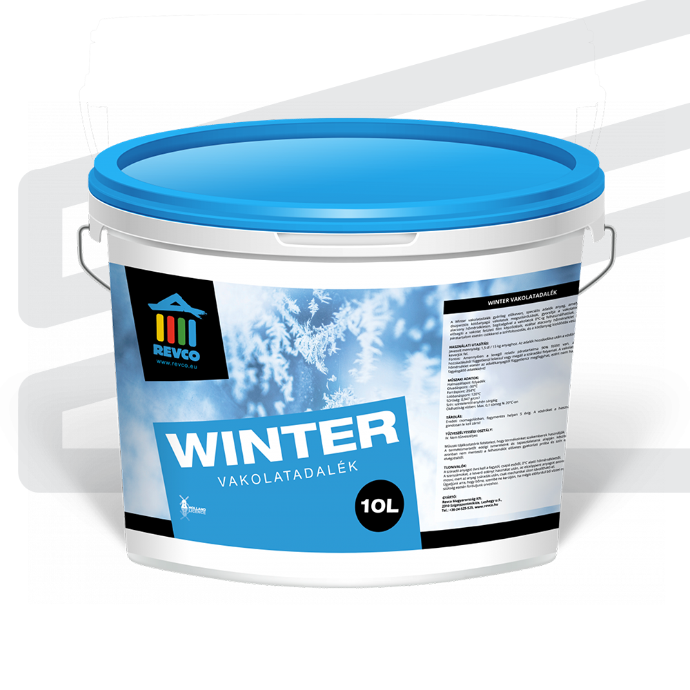 A REVCO WINTER vakolatadalék gyárilag előkevert, speciális adalék anyag, amely segíti, gyorsítja a diszperziós kötőanyagú vakolatok felületének kötését alacsony hőmérsékleten. Segítségével a vakolatok 0°C-ig felhasználhatóak. Az adalék elősegíti a vakolat felületi film képződését, ezáltal alacsony hőmérséklet és magas páratartalom esetén csökkenti a színfoltosodás és a kötőanyag kioldódás veszélyét.